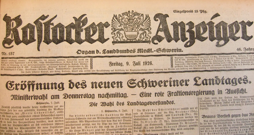 Parallel führte der Deutsche Luftfahrtverband vom 11. bis zum 27. Juli in Warnemünde den »Deutschen Seeflugwettbewerb 1926« durch. Der hiesige Flugplatz sei, so vermeldete der »Rostocker Anzeiger« am 10. Juli, erfolgreich aufgeblüht.